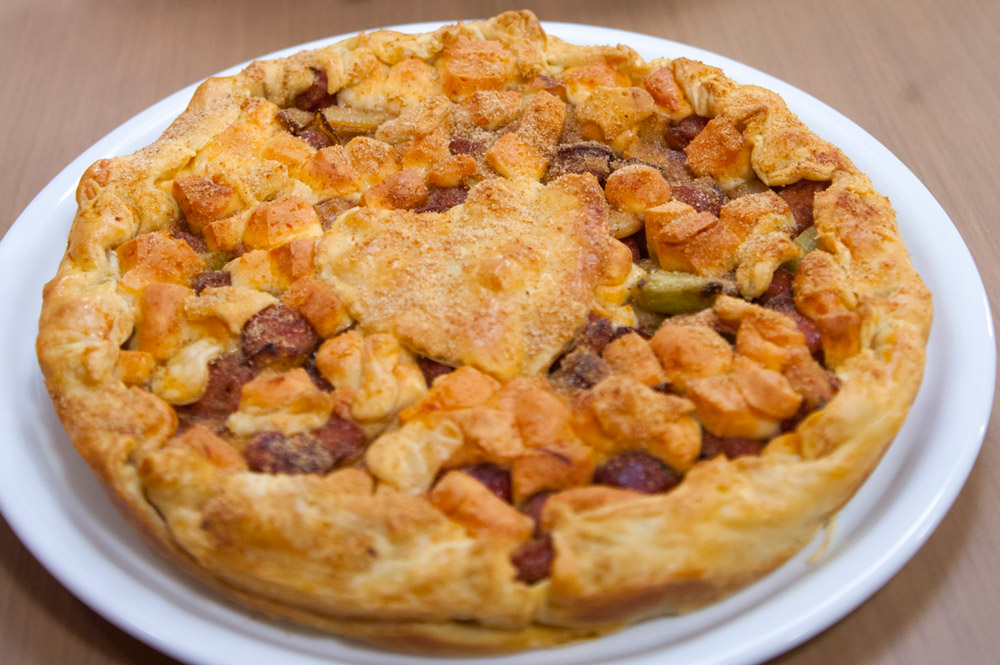 Ανοιχτή Πίτα Με Λουκάνικα Και Πράσα